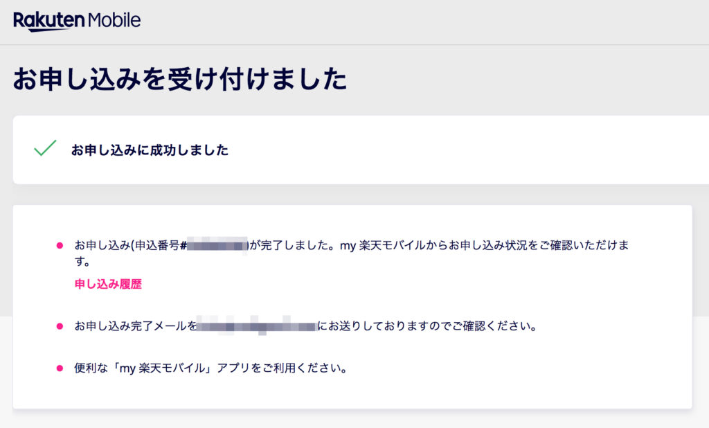 この画面になれば申し込み完了です。