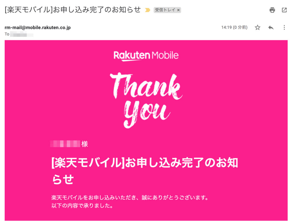 メールBOXに申し込み完了のお知らせが届きます。